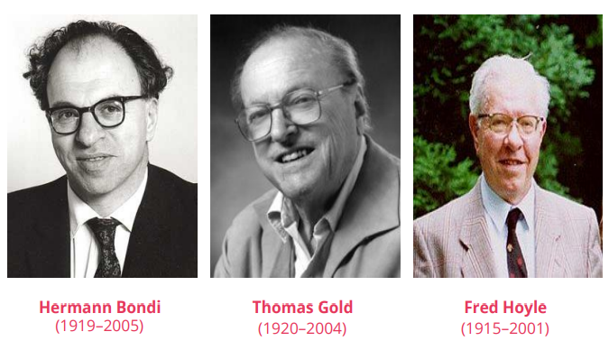 These three physicists from Cambridge, released the idea of the steady state theory by submitting two papers to Monthly Notices of the Royal Astronomical Society, one from Bondi and Gold, and the other one from Hoyle’s