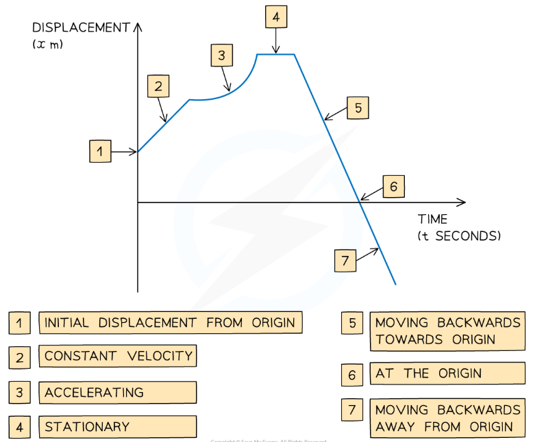 Displacement: the distance of an object from a fixed point in a specified direction