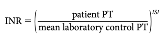 where ISI (international sensitivity index) is a measure of the responsiveness of a given thromboplastin to reduction of the vitamin K– dependent coagulation factors. The lower the ISI, the more responsive the reagent and the closer the derived INR will be to the observed PT ratio.