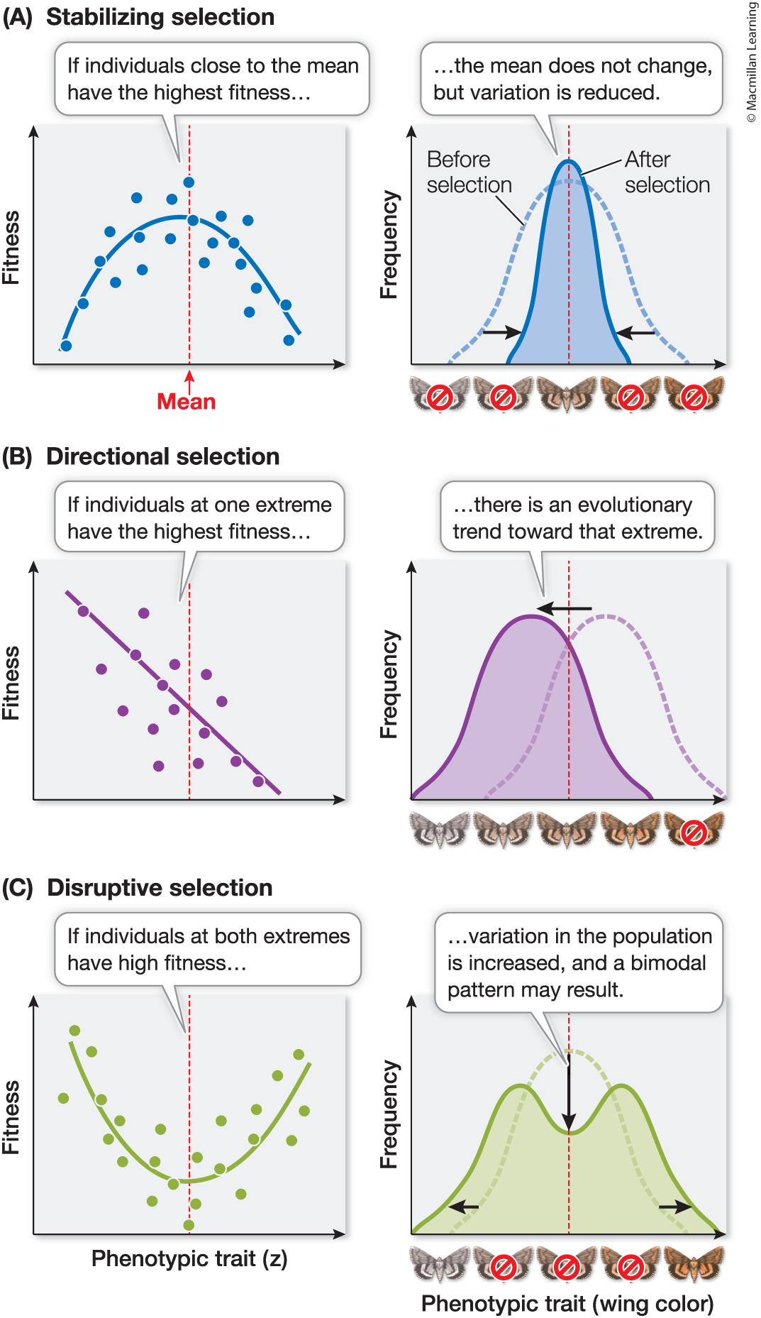 Stabilizing Selection: preserves the average phenotype (favors intermediate phenotypes and reduces variation in populations without changing the mean value of a trait)