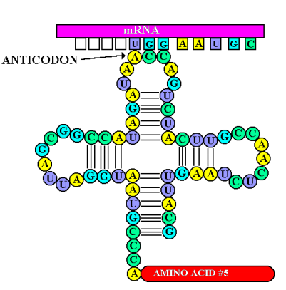 - Transfer RNA (tRNA) - smallest of the three types of RNA, carry correct amino acid to the site of protein synthesis