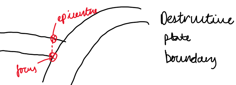 The amount of damage caused by a earthquake depends on the depth of the focus and the type of rock, as well as the development of a country and the location of the epicentre