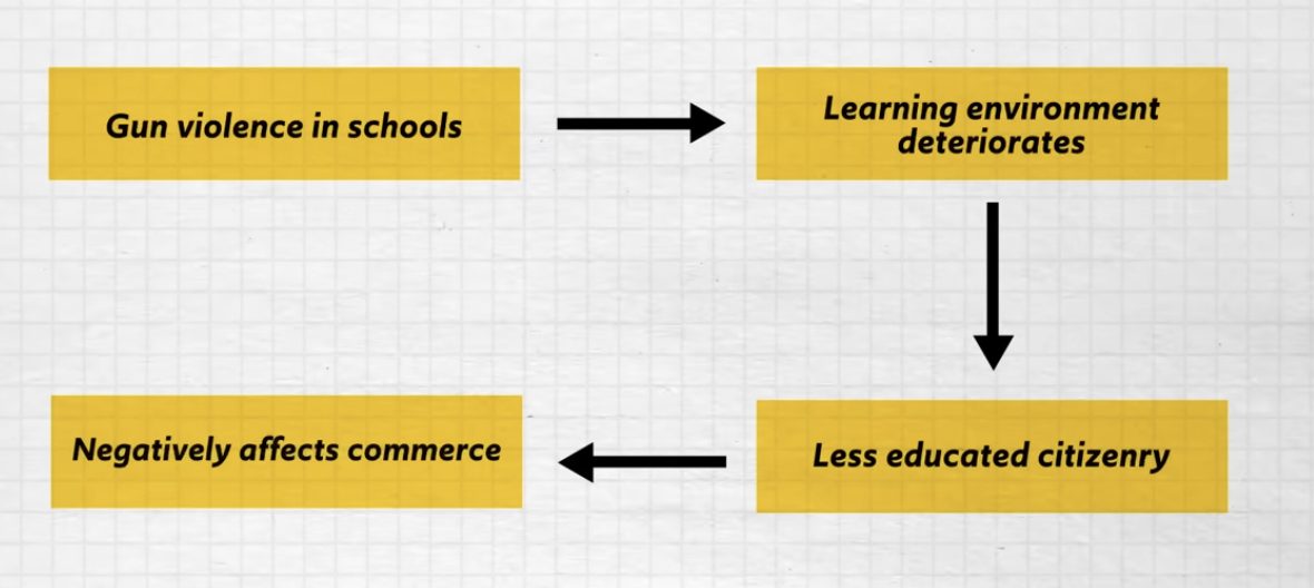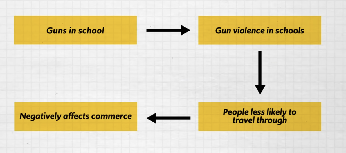 US argued that guns in school are related to interstate commerce, because guns lead to gun violence, and if there is gun violence than people are less likely to travel through those states, which would negatively affect commerce in those places