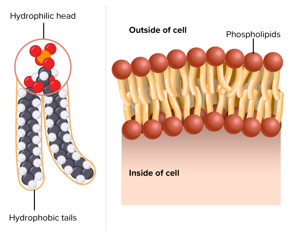 The heads of a phospholipid are polar, hydrophilic, and charged while the tails are nonpolar, hydrophobic, and uncharged.