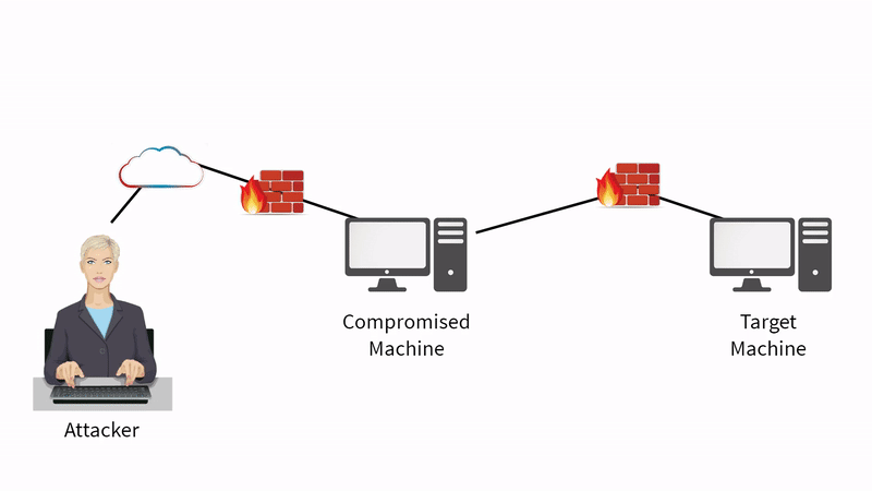 - We can launch an exploit from the compromised machine to the target machine on the right-hand side of the diagram * We may not be able to launch it directly from the attacker to the target machine because of the firewall rules that are in place, but we may be able to communicate from the compromised machine to the target machine