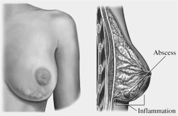 Symptoms: Usually involves pain and discharge from the breast, which may contain pus or blood.