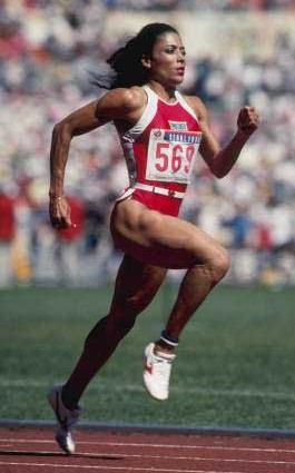 An American track and fied athlete. She set world records in the 100 meter and 200 meter races in the 1988 Olympics, making her the fastest woman of all time.