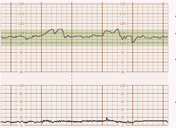 Moderate: Range bpm; indicative of fetal well-being and adequate oxygenation.