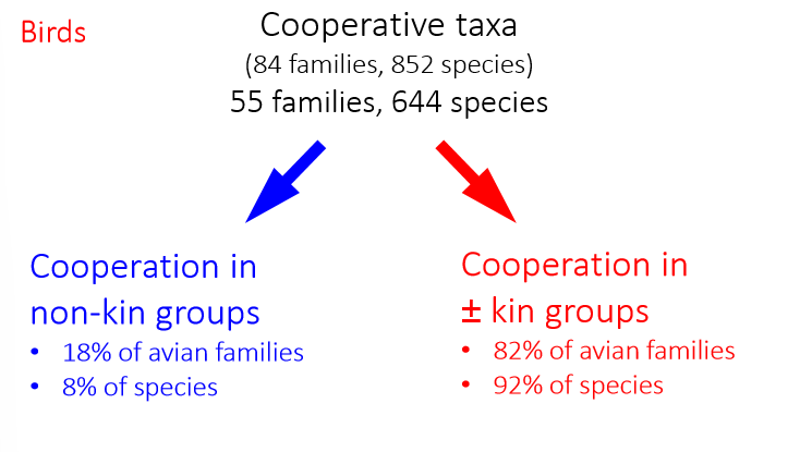 another study found 85% of cooperatively breeding bird species are in kin groups: