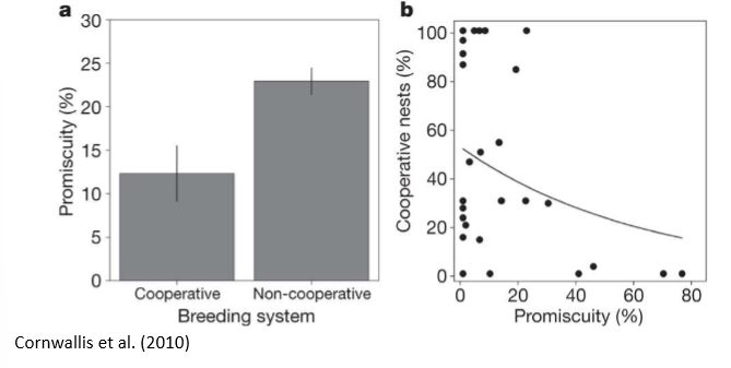 the higher the level of promiscuity, the lower the proportion of cooperative nests