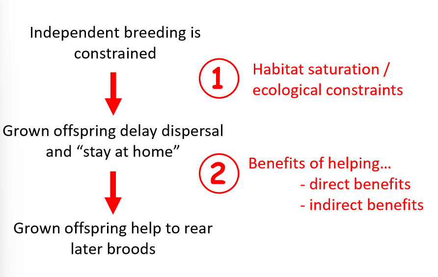 constraint on independent reproduction→ drives grown offspring to stay at home