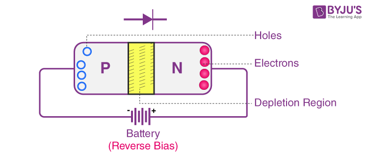Depletion Region Widening: The external electric field created by the reverse bias causes the depletion region to expand. This occurs because the negative potential on the N-type side repels electrons away from the junction, and the positive potential on the P-type side repels holes away from the junction.