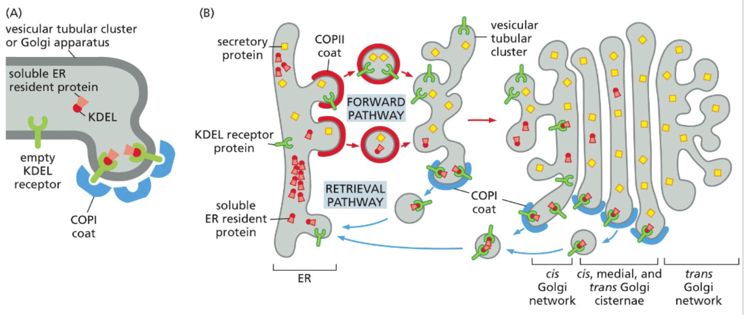 e.g. KDEL in BiP is recognized by KDEL receptors — bind escaped BiP