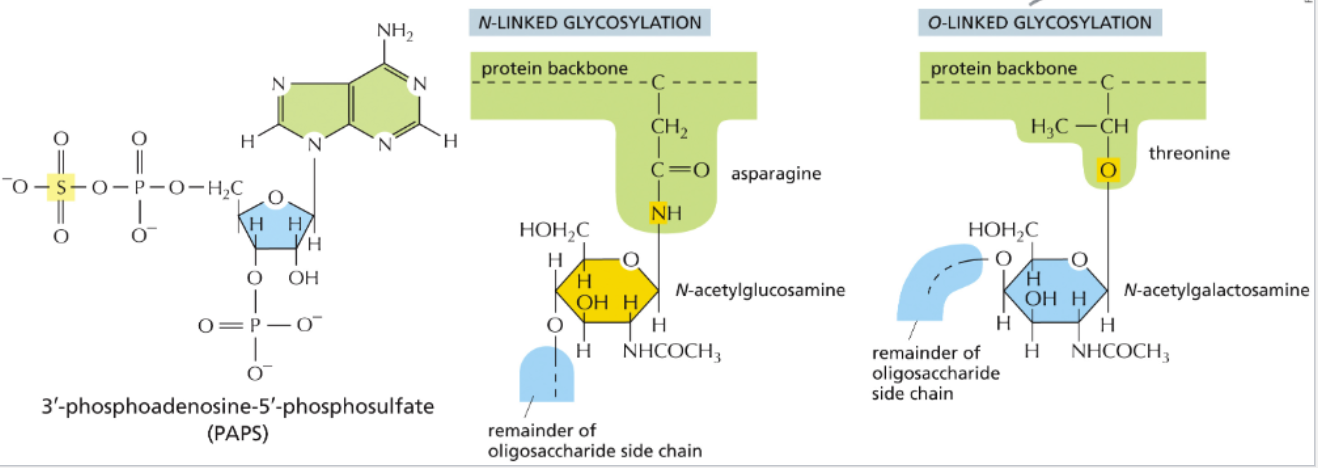 a group of glycoproteins called proteoglycans contains sulfated sugars that are modified in the Golgi