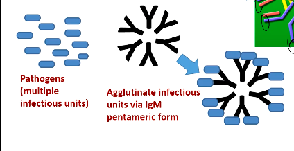 a group of pathogens will be clumped up due to the IgM as the pathogens binds onto the molecule and become one form