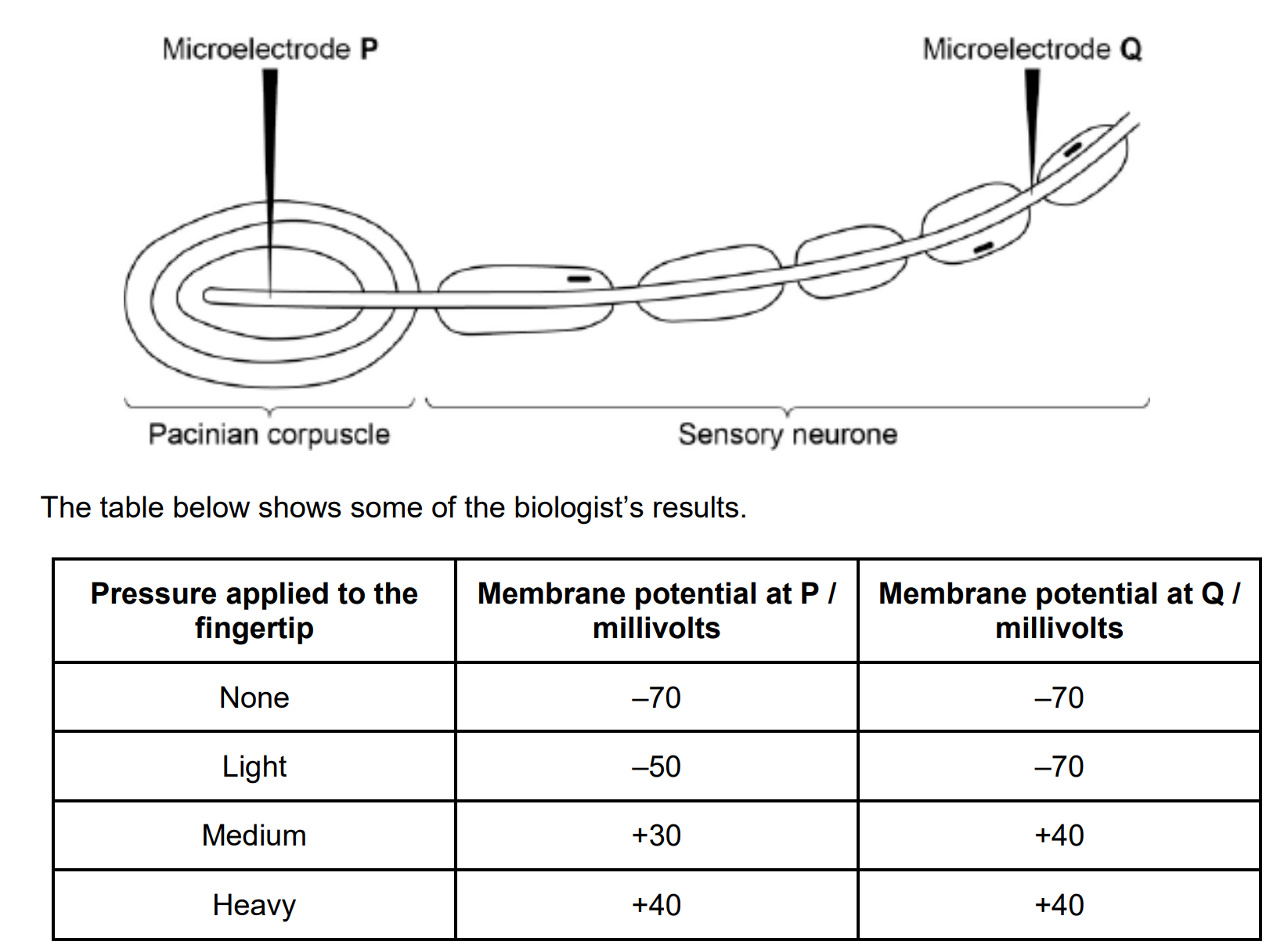 Question) The membrane at Q was the same whether medium or heavy pressure at fingertip, Why?