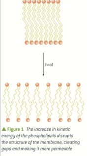 the molecules move around more creating gaps that cause the pigment and other molecules to be able to leak out