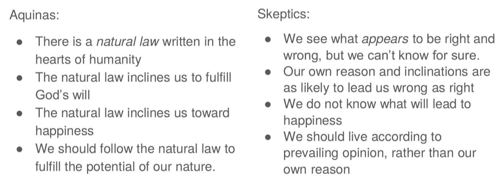 the scholastic vs. skeptical approach to ethics