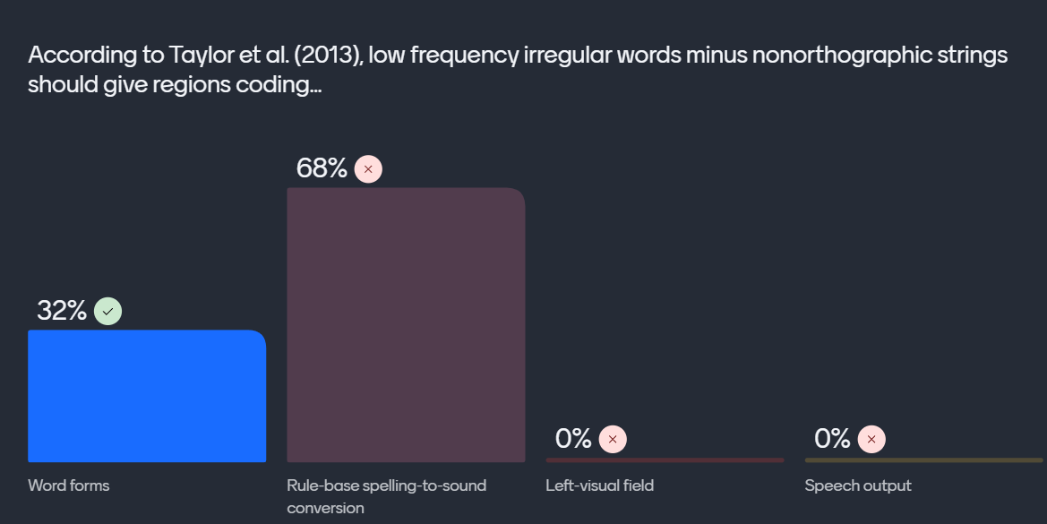 According to Taylor et al. (2013), pseudowords minus words gives regions coding