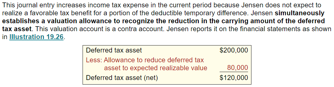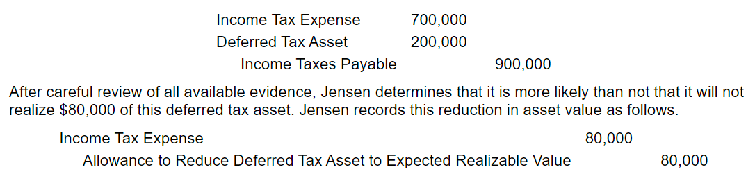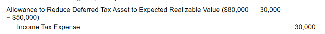 on the balance sheet at the end of the year the allowance to reduct dta is then reevaluated if it is expected to not realize 50,000 instead of 80,000 the reversing entry will go like so