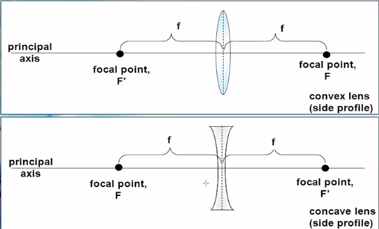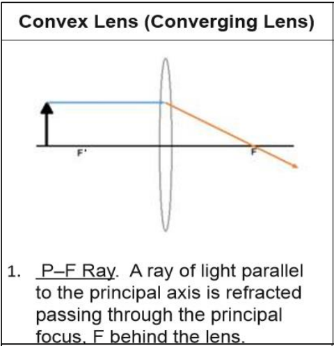 - also called Converging Lens because the light that passes through it tends to converge at a particular point called the focal point