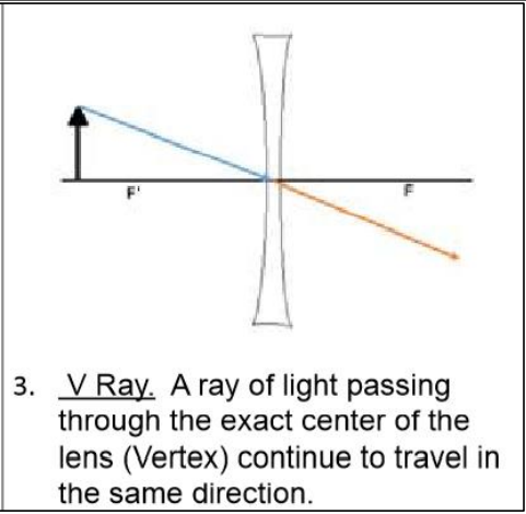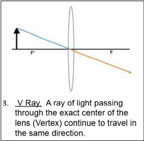 - Vertex, V – The geometric center of the lens also referred to as the optical center, O.