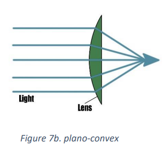 If both sides of the lens are curved inward, then that type of convex lens is called biconvex typically seen in magnifying glasses. If only one side of the lens is curved inward and the other has a flat surface, it is called plano-convex.