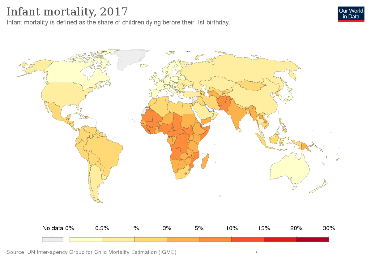 - Higher in less developed countries due to higher infant mortality