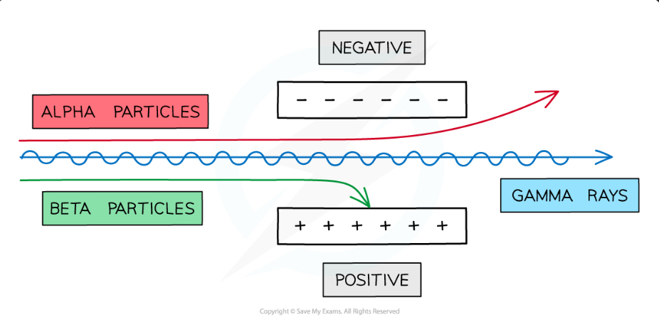 Nuclear radiation can ionise the atoms it hits by removing an electron so the atom loses a negative charge (positive charge overall)