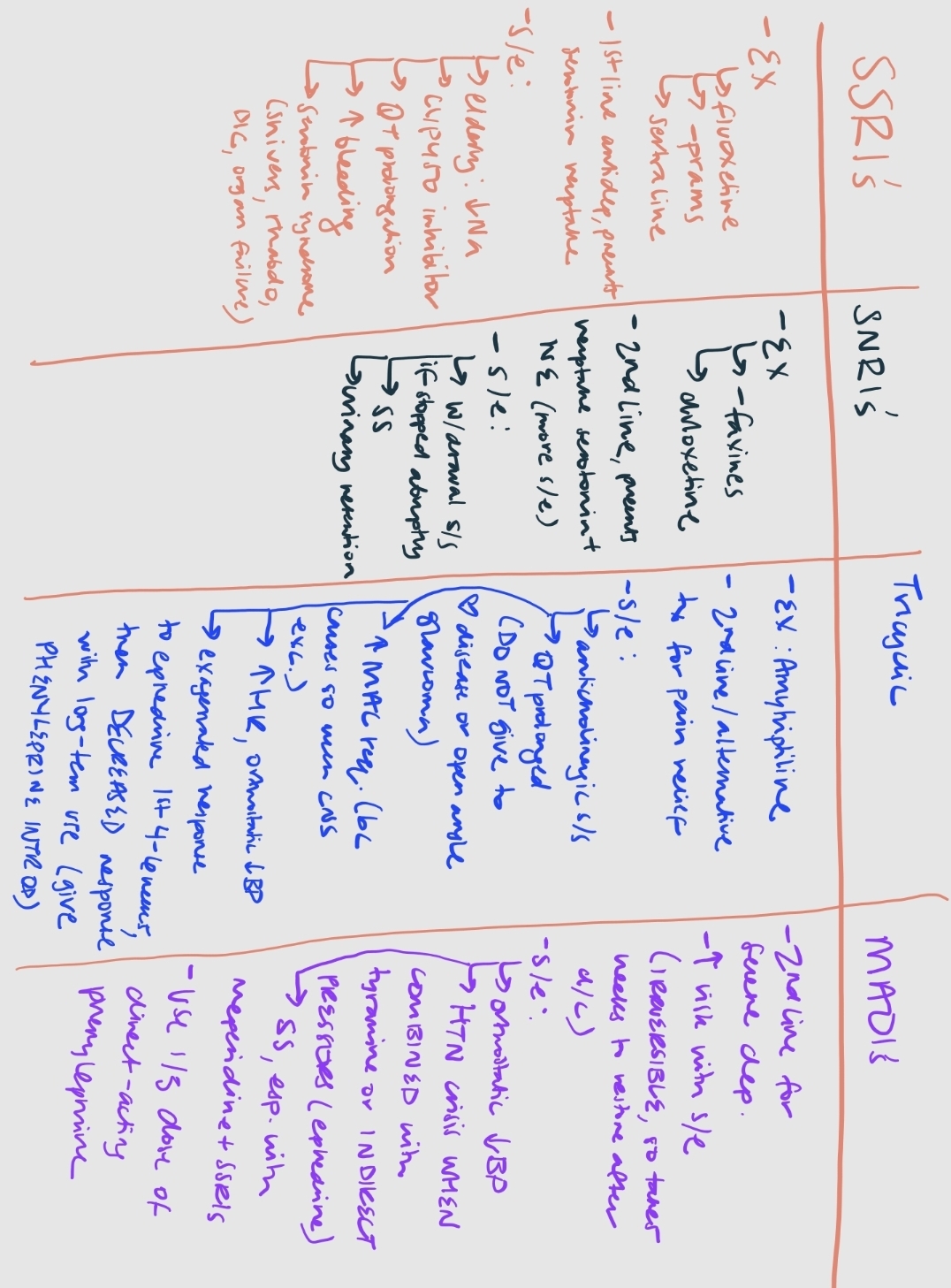 EX Drugs: Amitriptyline, Doxepin, Clomipramine, Nortriptyline, Imipramine, Desipramine
