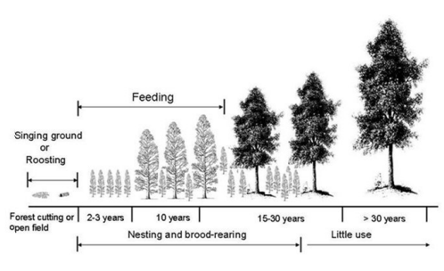 Intersperse mid-successional forest patches (5-30 acres) to provide cover/forage
