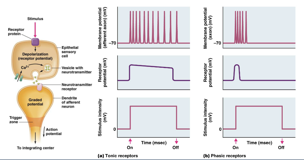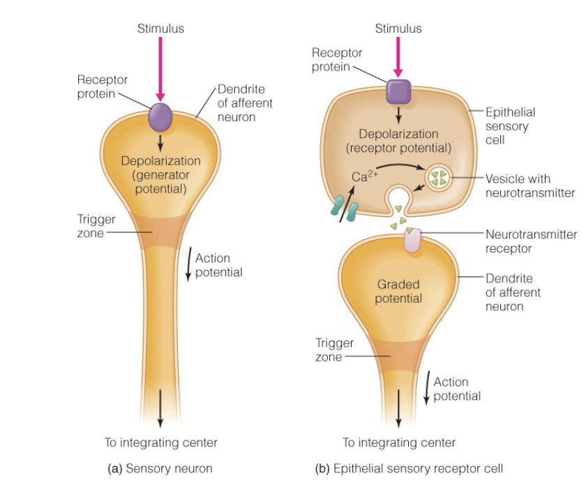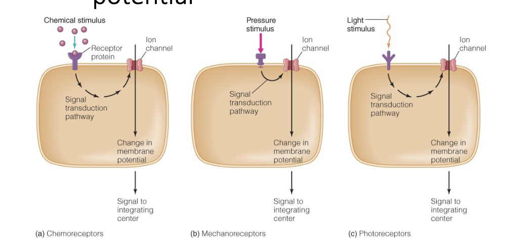 Sensory receptors covert incoming stimuli into changes in membrane potential