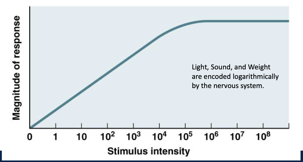 Logarithmic encoding of intensity allows for a compromise between dynamic range and discrimation