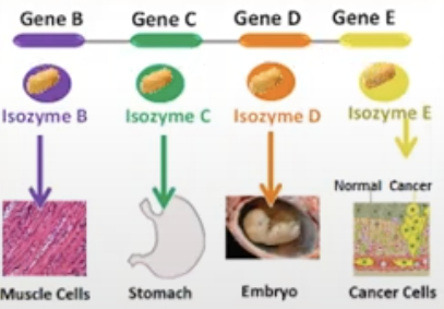referring to the same enzyme so they catalyze by the same enzyme but is found in different tissues in the body, they are formed from different genes