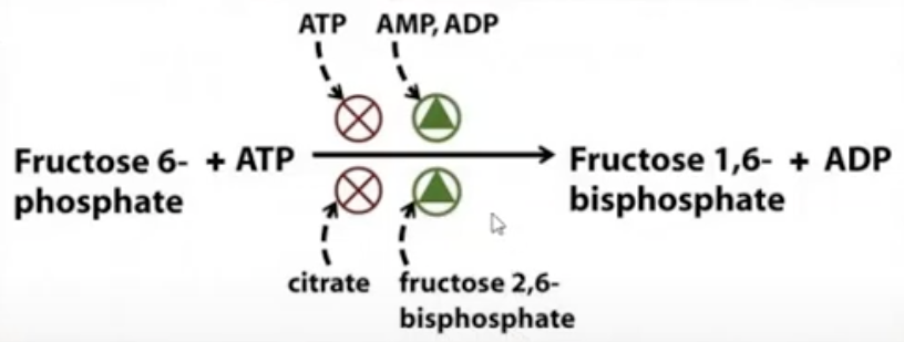 if we lack energy, if ADP and AMP are abundant (low energy), it will act as activators, it will tell PFK to make the reaction faster