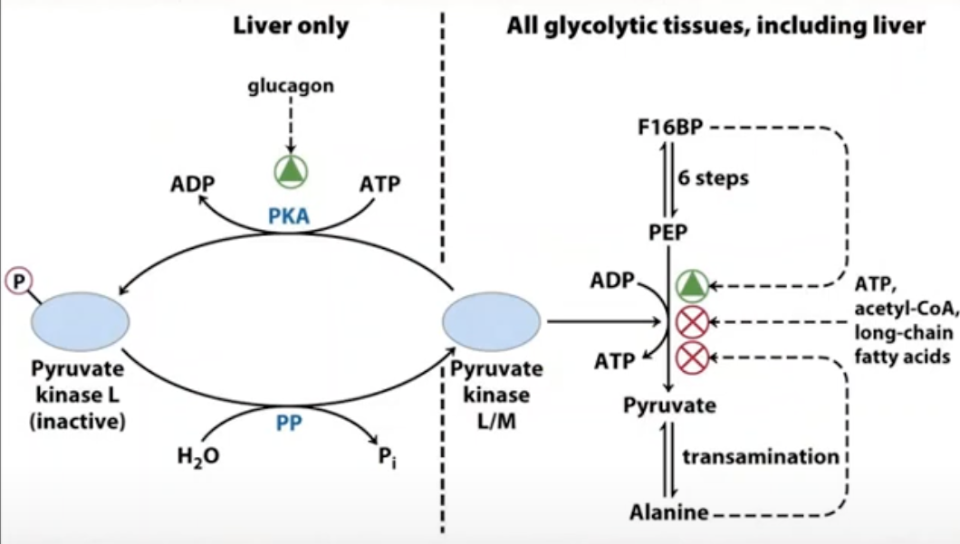 if we have a lot of FBP, it will tell PK to do the reactions faster but it will tell PFK to stop