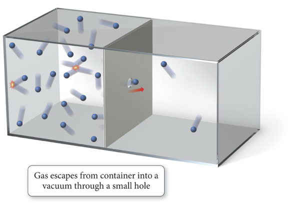 The process by which a collection of molecules escapes through a small hole into a vacuum (low pressure) is called effusion.