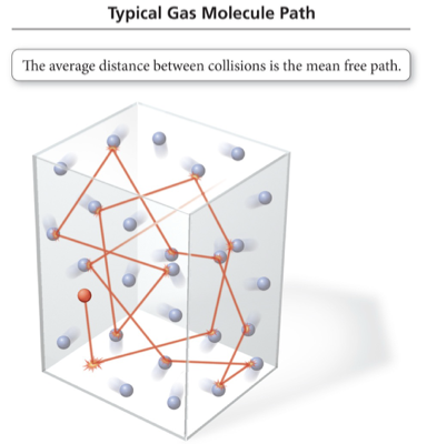 Molecules in a gas travel in straight lines until they collide with another molecule or the container.