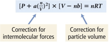 Combining the equations to account for molecular volume and intermolecular attractions we get the van der Waals equation.