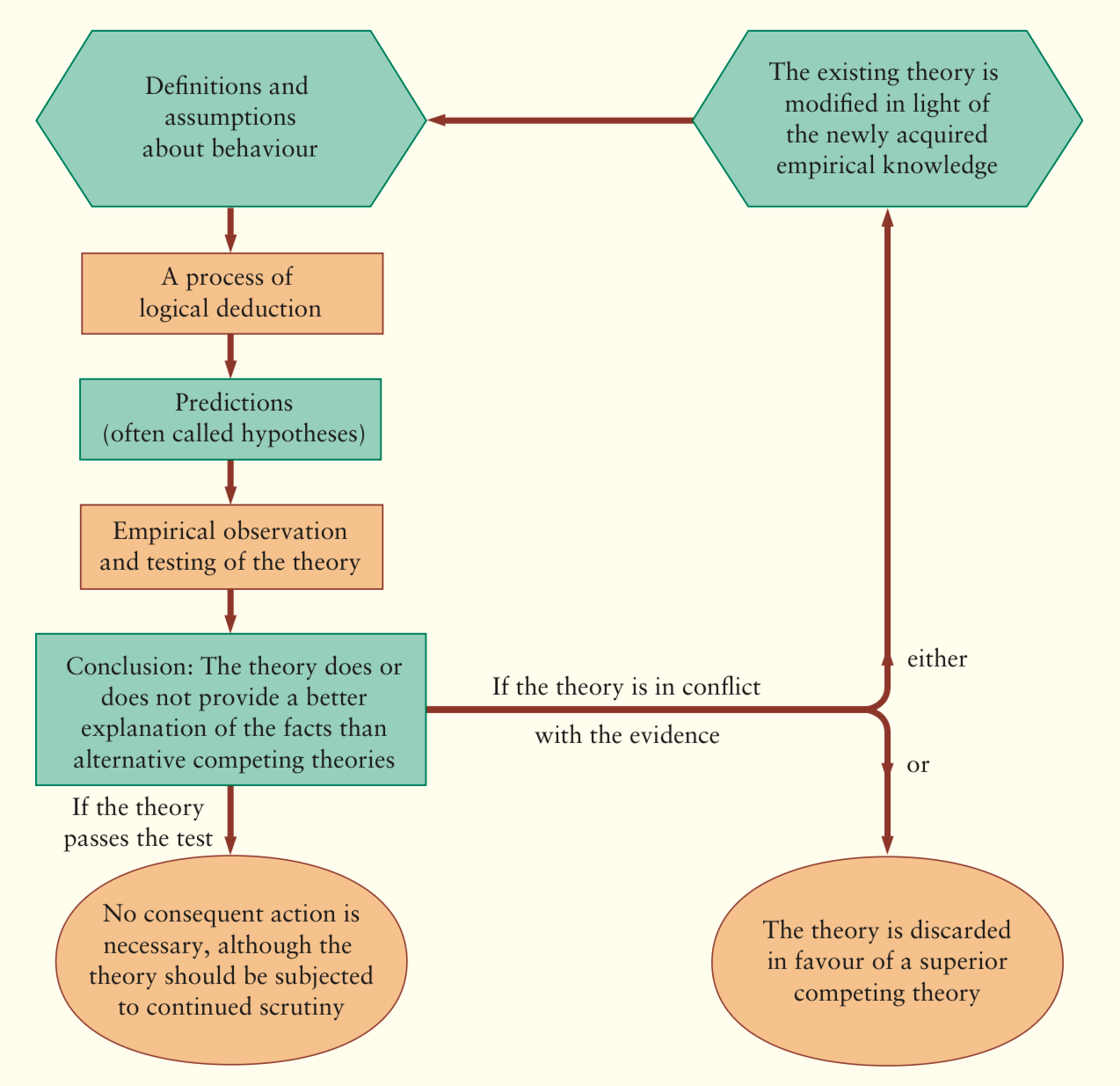 Theories are tested by contrasting predictions against empirical evidence.