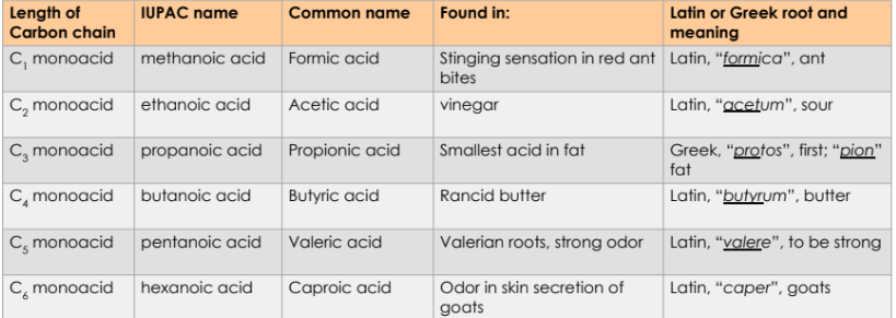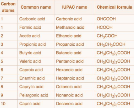 Straight-chain carboxylic acids with 1-9 carbon atoms are liquids with strong odors.