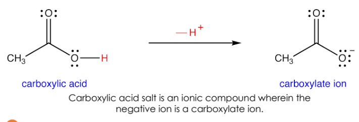Carboxylic acid salts are ionic compounds with the carboxylate ion as the negative part.