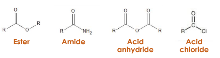 Derivatives of benzoic acid are named based on substitutions on the aromatic ring.