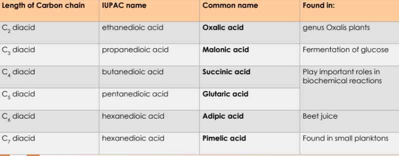 Unsaturated Acids: Mono: Acrylic acid (Propenoic acid). Di: Maleic acid, and Fumaric acid (Butenedioic acid)