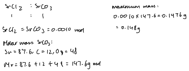Mass of filter paper / g | Mass of filter paper + SrCO₃ / g | Mass of SrCO₃ / g |