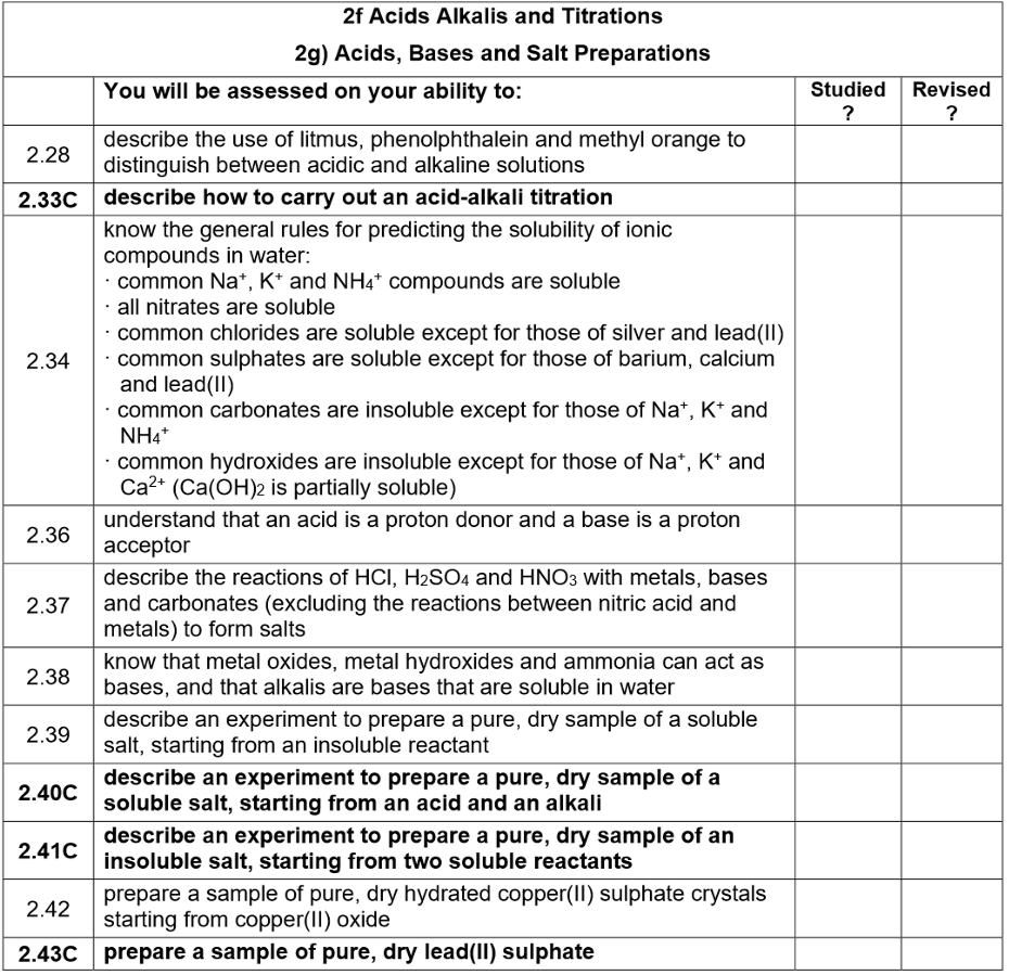 Titration method – Use exact volumes of acid and soluble base with an indicator. Forms soluble salts that are Group I or ammonium salts.