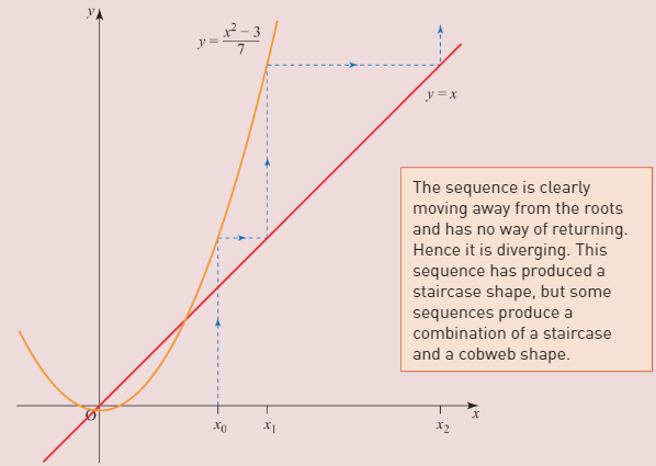 when plotting iterative sequences on a graph, you may be asked to âshow the behaviourâ or âadd cobweb/staircase diagramsâ to it. This means drawing a cobweb/staircase diagram on the graph depending on whether its converging or diverging.