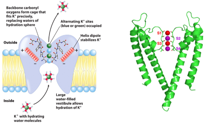 - Carbonyl oxygen coordinate with unhydrated K+