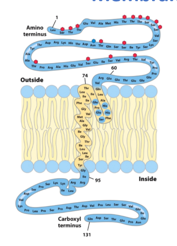 glycophorin A = single spanning transmembrane