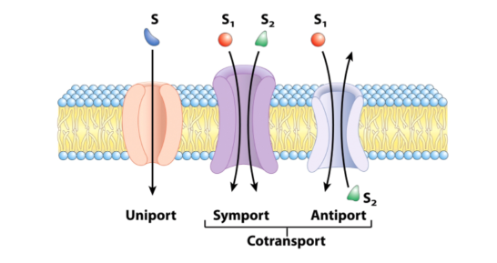 - Cotransporters = transports more than one type of solute